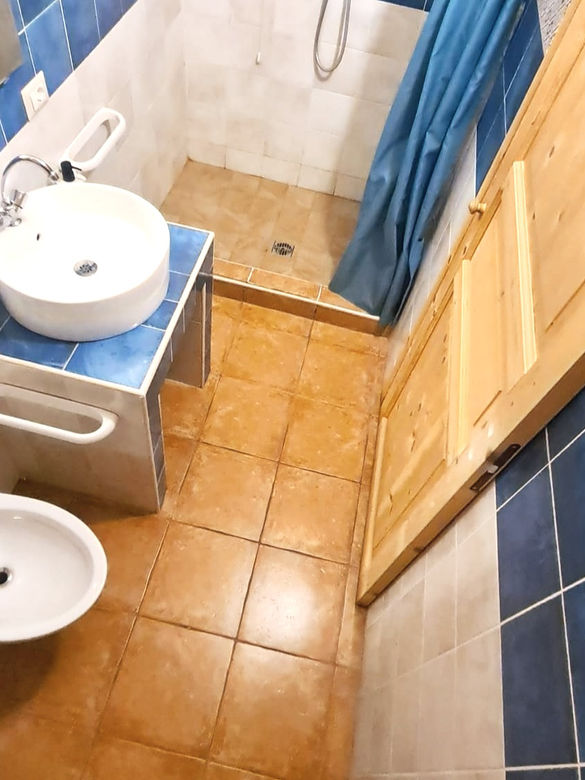 Benvenuti nella nostra confortevole camera al piano terra, con letto matrimoniale e ampio bagno privato. La Camera Cielo, come suggerisce il suo nome, vi offre un piccolo paradiso per rilassarvi e godervi il vostro soggiorno. Il bagno privato, spazioso e ben fornito, offre ogni comodità.